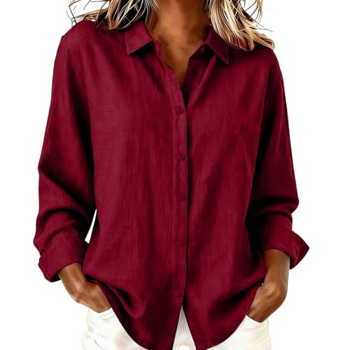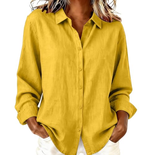 Générique Chemise Lin Femme Élégante Manche Longue, Chemisier D'été Haut pour Femme Couleur Uni Tops Polyvalente Vetement en Lin Abordable Chemise De Vacances Au Bord De Mer.