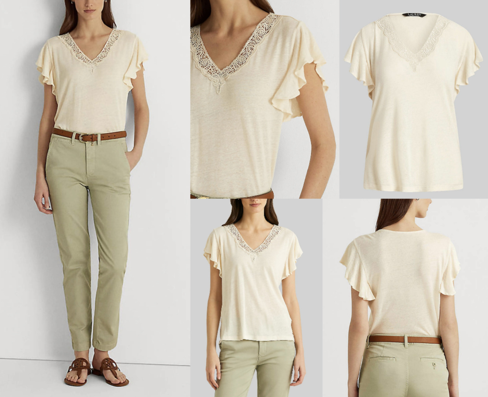 Lauren Ralph Lauren Siglay Lin Encolure En V T-Shirt À Volants Blouse Haut S