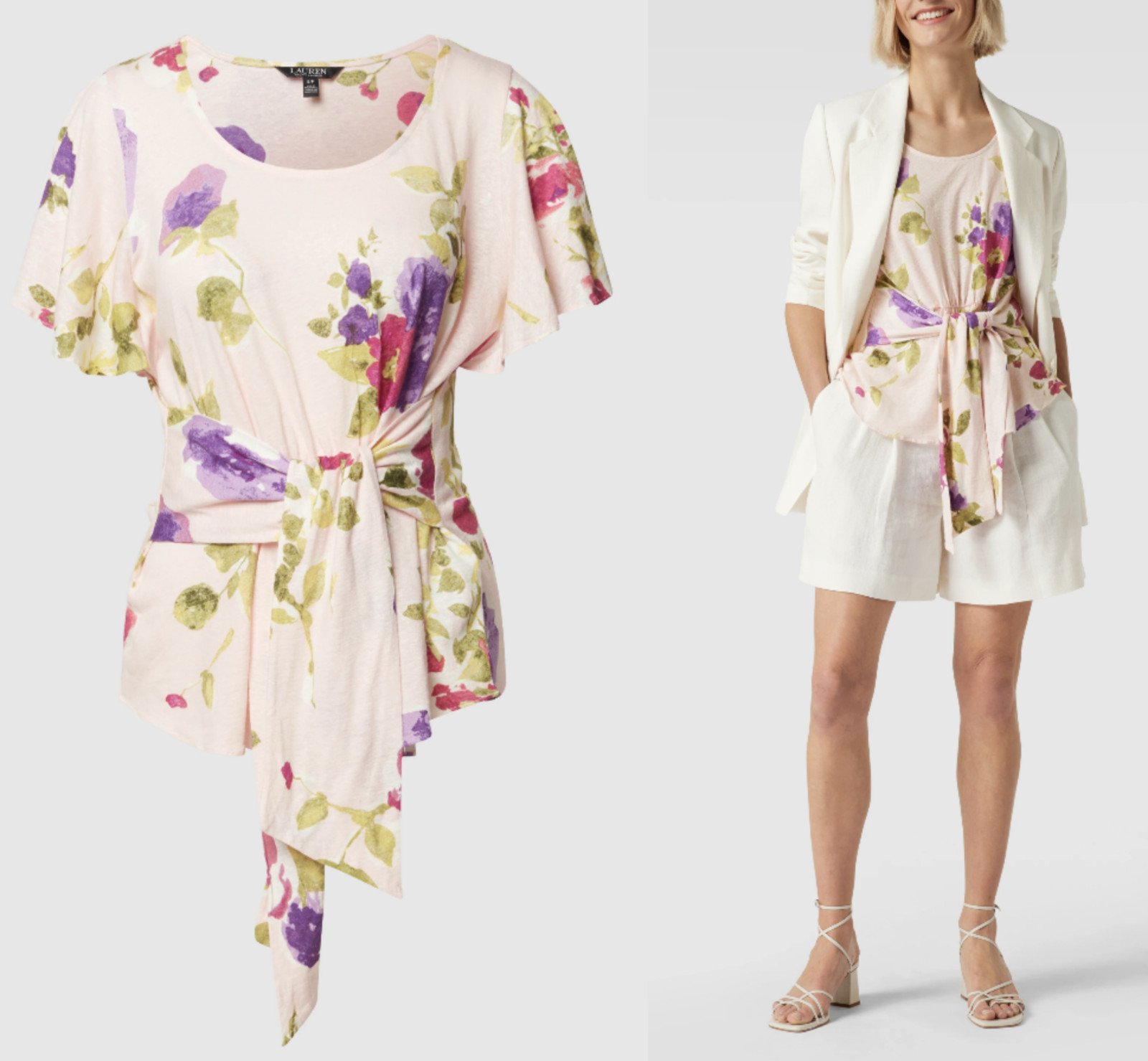 LAUREN RALPH LAUREN Haut À Manches Courtes Imprimé Floral Avec Décolleté En V XS
