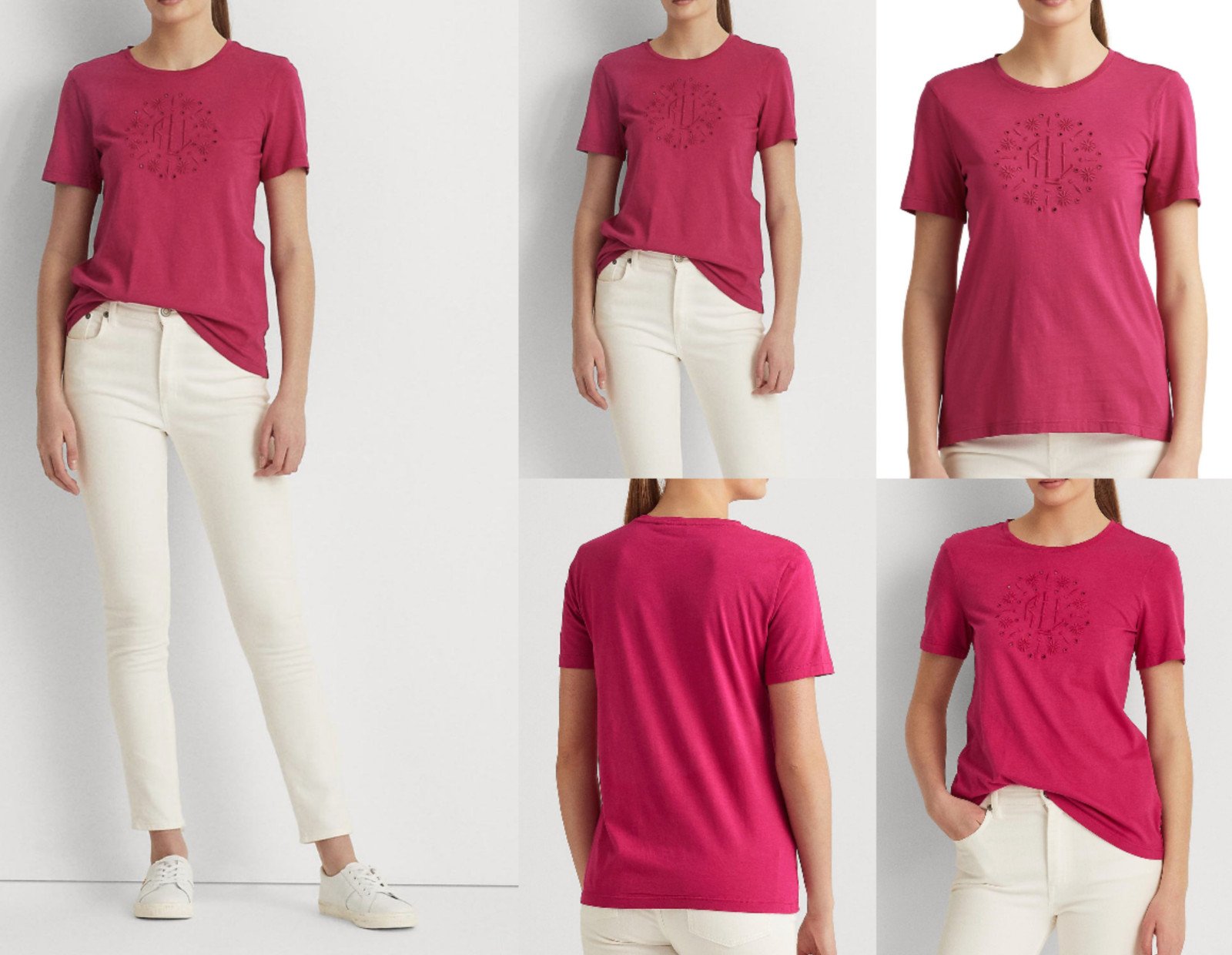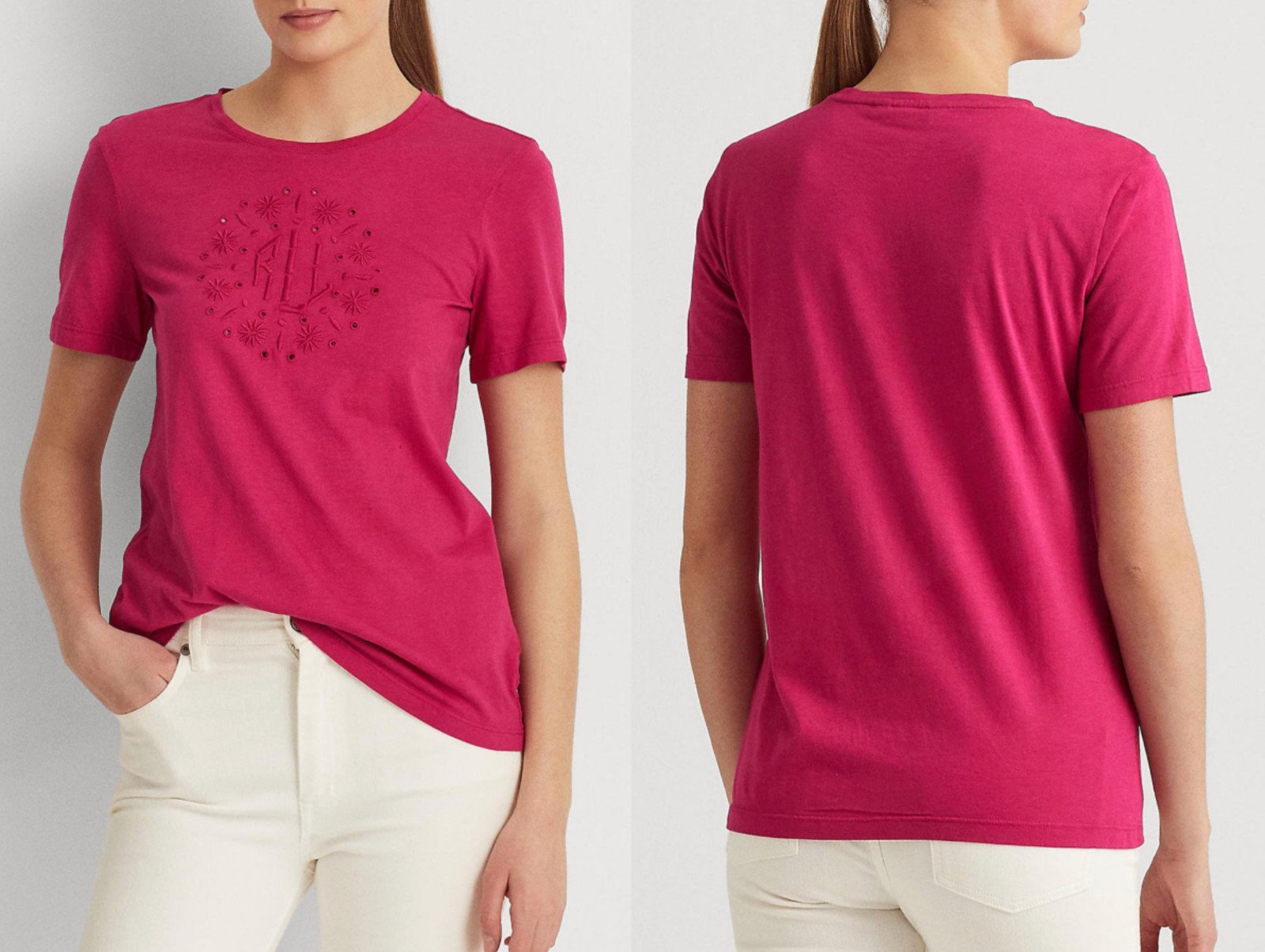 LAUREN RALPH LAUREN Haut Iconique En Coton Modal Doux Blouse T-Shirt Rose Neuf M