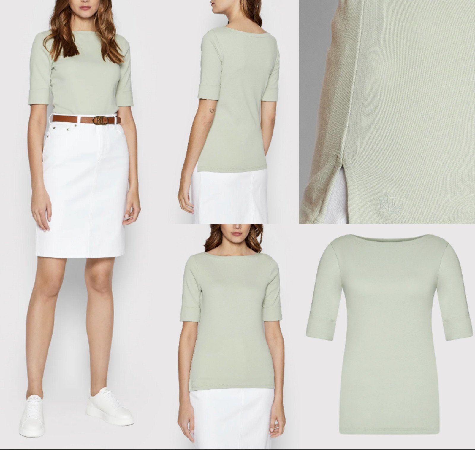 Lauren Ralph Judy sous-Marin Chemise Coton Chemisier Haut T-Shirt Sage XS
