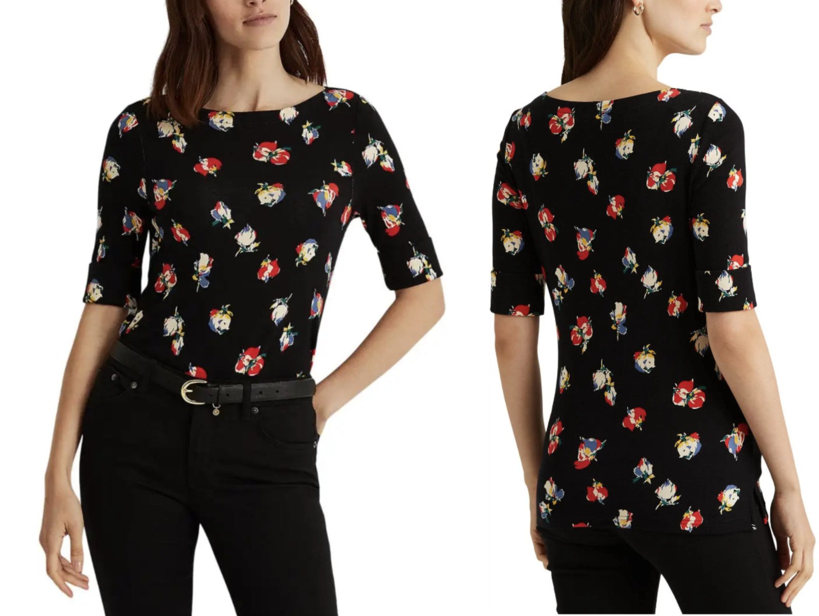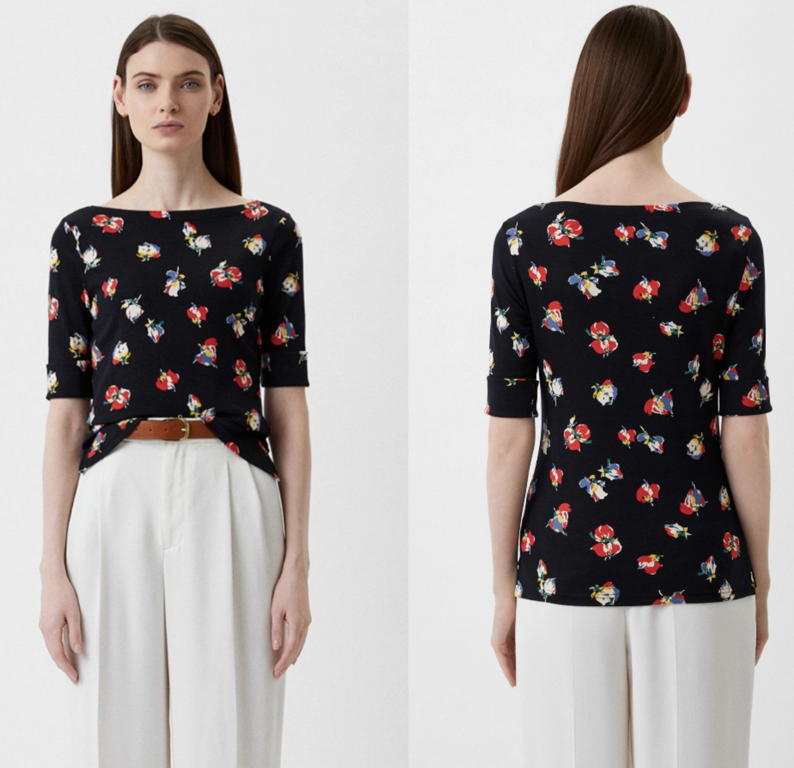 LAUREN RALPH LAUREN Haut À Col U-Bateau Imprimé Floral Petite