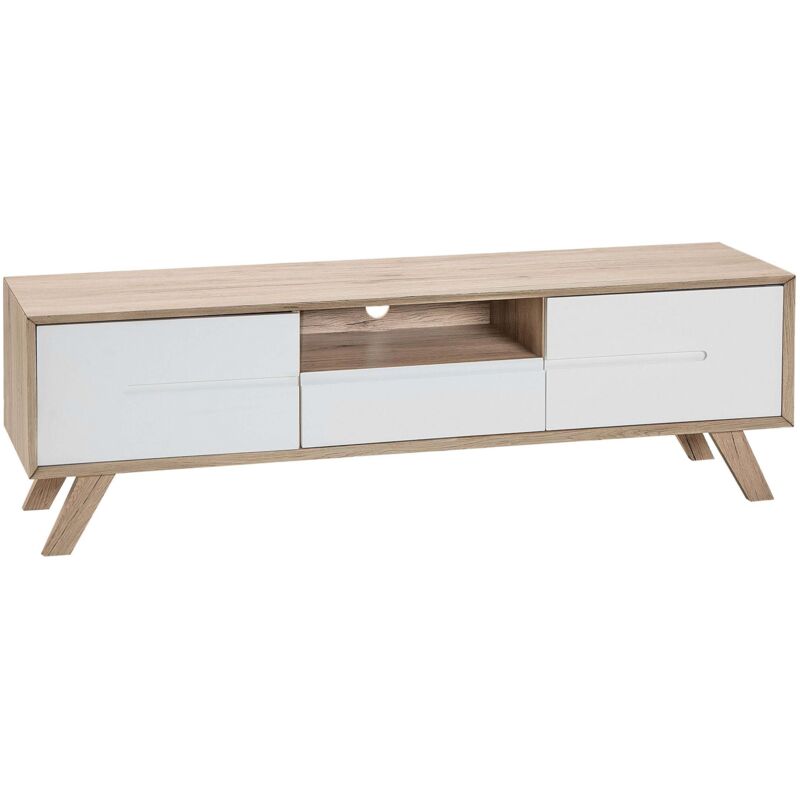Beliani - Meuble Tv en Imitation Bois Clair avec un Tiroir et 2 Portes Banches Mat Pieds en Bois de Pin 45 cm de Hauteur