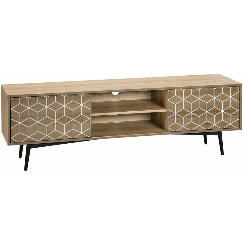 Beliani - Meuble tv Cadre et 2 Portes Imitation Bois avec Motif Géométrique Pieds en Acier 50 cm de Hauteur