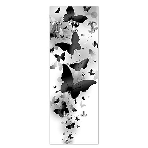 Lupia Porte-manteau mural 46 x 125 cm Black Butterflies à panneau avec impression, garde-manteau mural avec 5 crochets