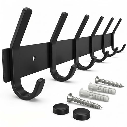 SAYONEYES Porte-manteau mural noir mat avec 6 crochets doubles pour suspendre – 43,2 cm – Crochets muraux rustiques en acier inoxydable SUS304 – Chapeau, vêtements, sac à main, serviette – 1 paquet