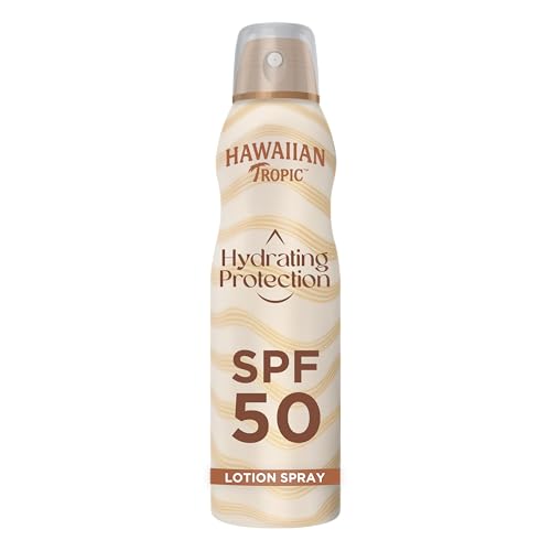 Hawaiian Tropic | Brume solaire hydratante Hydrating Protection SPF 50, Protection UVA+UVB, 220 ml, Senteur tropicale, Résiste à l’eau, Vegan