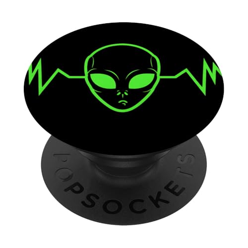 Graphique Alien Head Heartbeat | Sci-FI UFO Pulse Design PopSockets PopGrip Adhésif