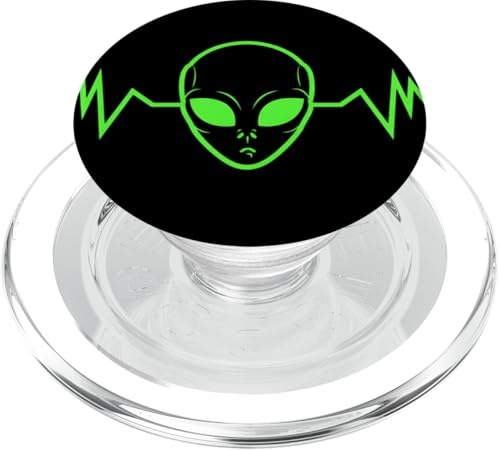 Graphique Alien Head Heartbeat | Sci-FI UFO Pulse Design PopSockets PopGrip pour MagSafe
