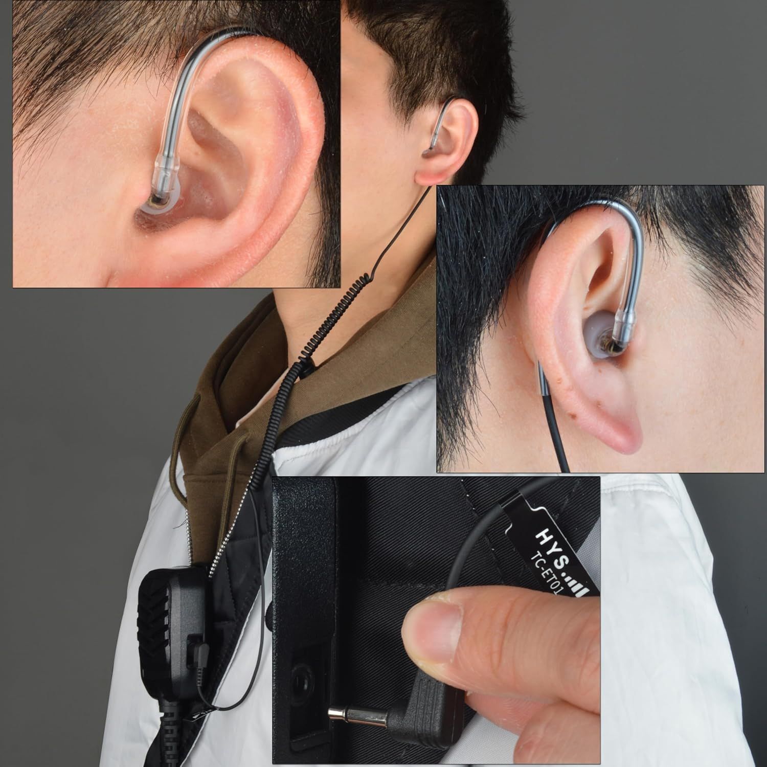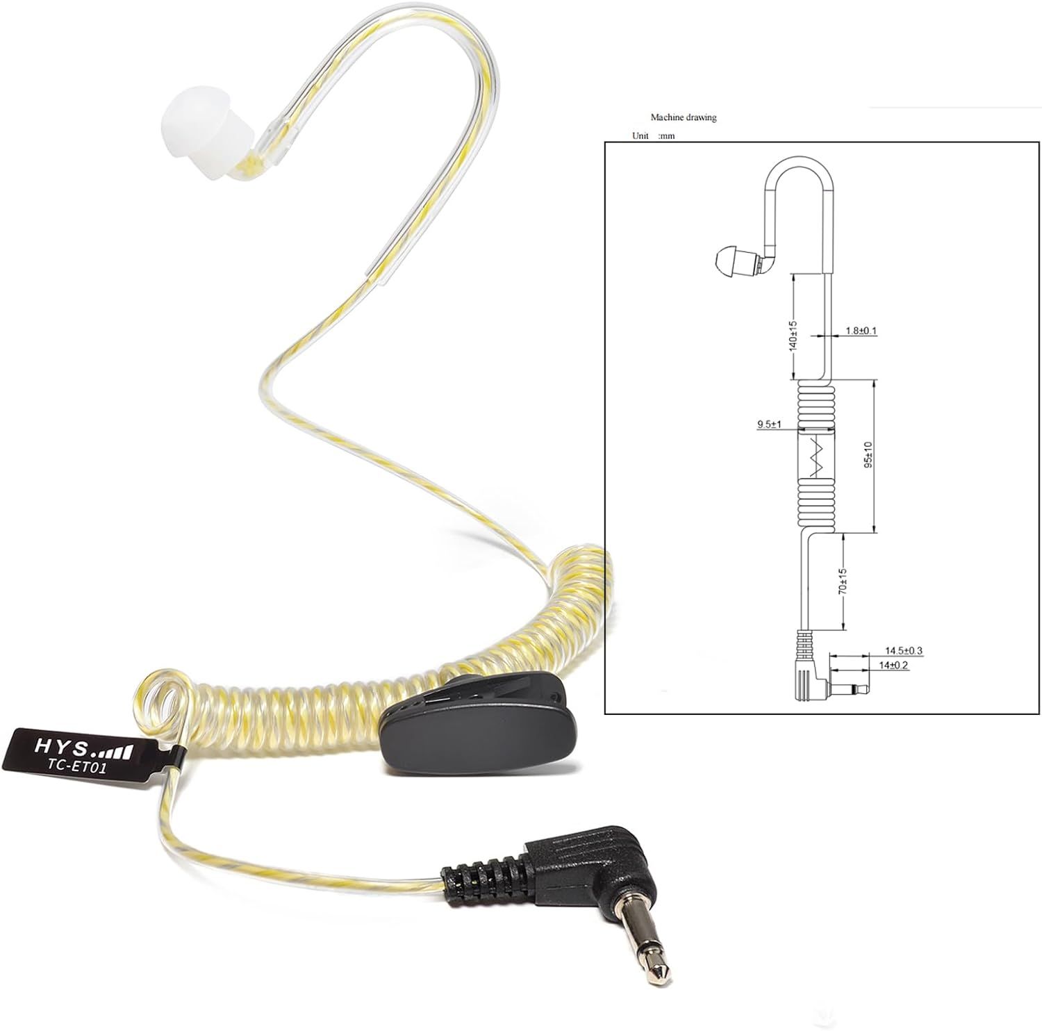 HYSHIKRA One Ear Headset 3.5mm Jack Single Ear Reception Only Walkie Talkie Headphones Compatible with Motorola Sepura Rexon Wouxun Kenwood Baofeng Quansheng Handheld radios (Tube Transparent, 5)