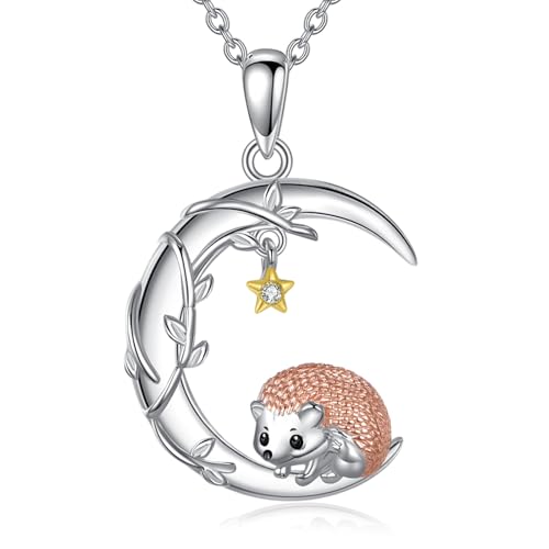 DAYLINLOVE Hedgehog Lune Collier S925 en argent sterling avec pendentif hérisson Bijoux Cadeaux pour femmes et mamans