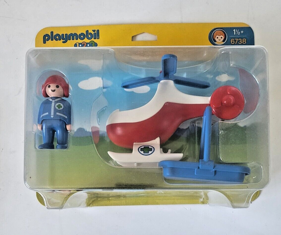 PLAYMOBIL 1.2.3 Pilote et hélicoptère de sauvetage réf 6738 dès 18 mois