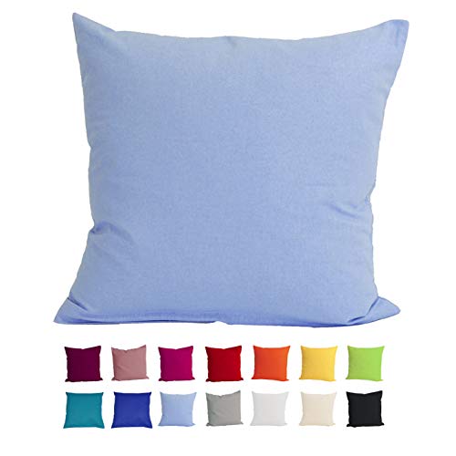 beties Housse de coussin basique d'environ 80 x 80 cm 100 % coton dans de nombreuses couleurs unies vives (bleu clair)