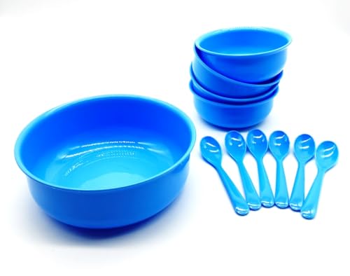 Kimmel Set de bols bleu clair : se compose de 4 petits bols, 6 cuillères et 1 grand bol