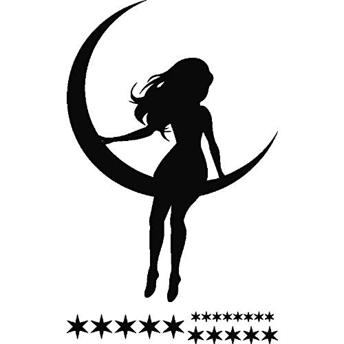 Ambiance-Live Sticker Mural Petite Fille sur Lune - 61 X 45 cm, Bleu Clair
