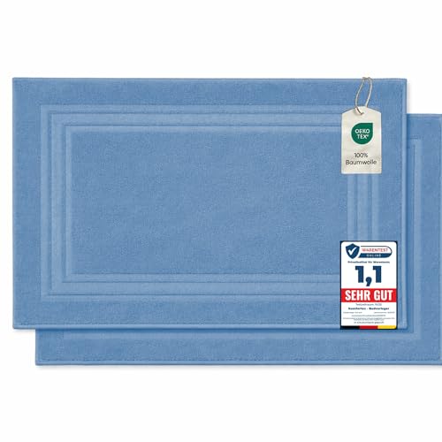 Komfortec Lot de 2 Tapis de Bain en Tissu éponge, Lavable, 600 g/m² et 100% Coton, Absorbant et à séchage Rapide, 50 x 70 cm, Bleu Clair