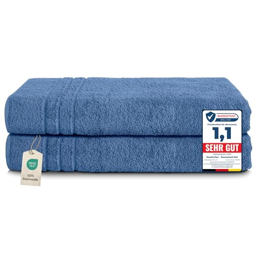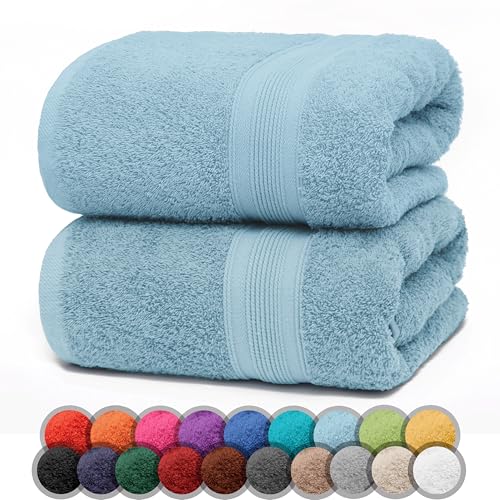 Komfortec Lot de 2 Serviettes de Sauna 80 x 200 cm 100% Coton XXL – Grandes Serviettes de Sauna Douces à séchage Rapide – Bleu Clair