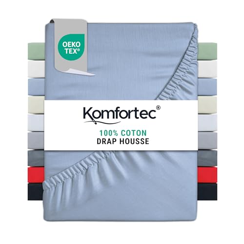 Komfortec Drap-Housse en Jersey 140 x 200 cm, 100% Coton, Bleu Clair