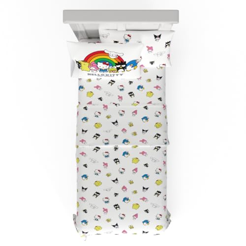 Franco Collectibles Sanrio Parure de lit 7 pièces Super Douce avec Couvre-Oreiller, Motif Hello Kitty & Friends (Produit sous Licence Officielle)