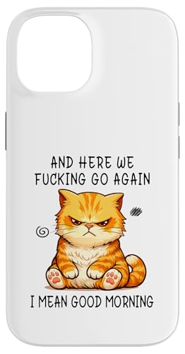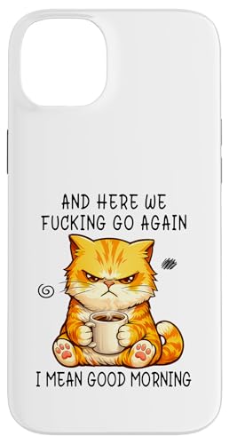 and Here We Go Again Good Morning Angry Cat Meme Coworkers Coque pour iPhone 14 Plus