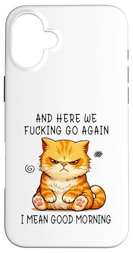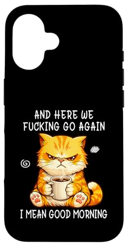 and Here We Go Again Good Morning Angry Cat Meme Coworkers Coque pour iPhone 16 Plus