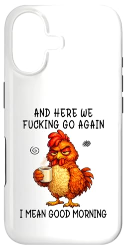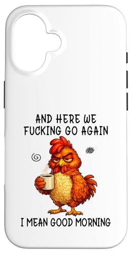 and Here We Fucking Go Again Good Morning Coffee Meme Coque pour iPhone 16