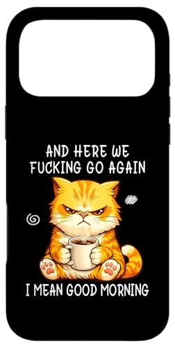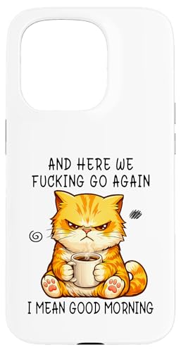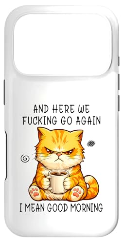 and Here We Go Again Good Morning Coffee Angry Cat Meme Coque pour iPhone 17 Pro