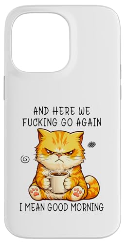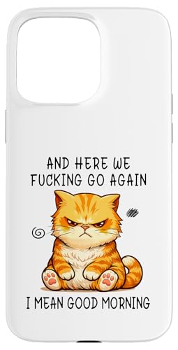 and Here We Go Again Good Morning Angry Cat Meme Coworkers Coque pour iPhone 15 Pro Max