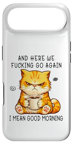 and Here We Go Again Good Morning Angry Cat Meme Coworkers Coque pour iPhone 17