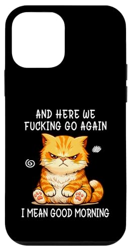 and Here We Go Again Good Morning Angry Cat Meme Coworkers Coque pour iPhone 12/12 Pro