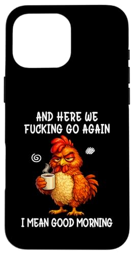 and Here We Fucking Go Again Good Morning Coffee Meme Coque pour iPhone 16 Pro