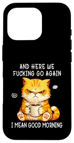 and Here We Go Again Good Morning Coffee Angry Cat Meme Coque pour iPhone 16 Pro
