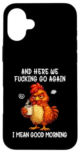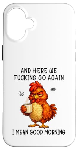 and Here We Fucking Go Again Good Morning Coffee Meme Coque pour iPhone 16 Plus