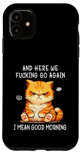 and Here We Go Again Good Morning Angry Cat Meme Coworkers Coque pour iPhone 11