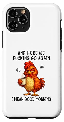 and Here We Fucking Go Again Good Morning Coffee Meme Coque pour iPhone 11