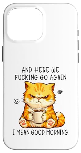 and Here We Go Again Good Morning Coffee Angry Cat Meme Coque pour iPhone 16 Pro Max