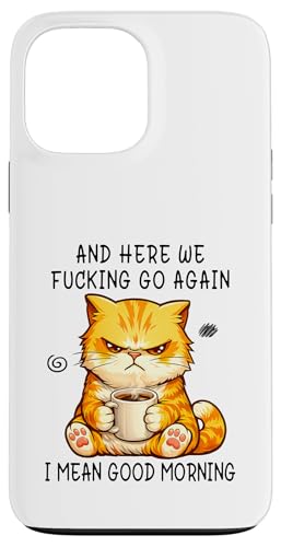 and Here We Go Again Good Morning Coffee Angry Cat Meme Coque pour iPhone 13 Pro Max