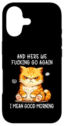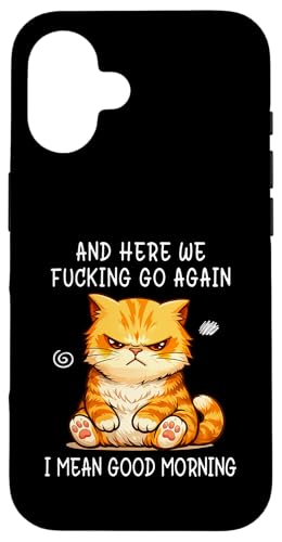 and Here We Go Again Good Morning Angry Cat Meme Coworkers Coque pour iPhone 16