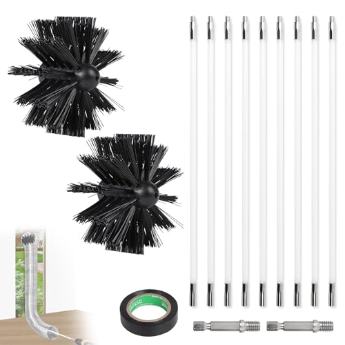 Lvjkes hérisson ramonage, 10 pièces de nettoyage de conduits d'aération avec 8 tiges de 41 cm, 1 a tige hexagonale de 4,5 cm, 1 rouleau de ruban adhésif, pour cheminée, conduit de séchoir,sortie d'air