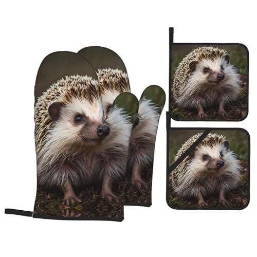 Maniques Cuisine Hérisson Mignon Imperméable Gants De Cuisson Anti Chaleur Lot De 4 pour Griller Cheminée Pâtisserie