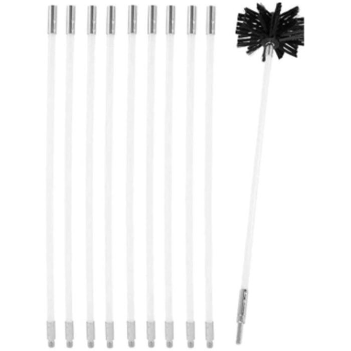 Kit Brosse Nettoyage Cheminée, 150 mm Ramonage, Cheminées Brosse Kit de Ramonage, Hérisson ramonage en Nylon avec 9 Tiges Flexibles et 2 TêTes de Brosses, pour Tuyau d'égout et Cheminée