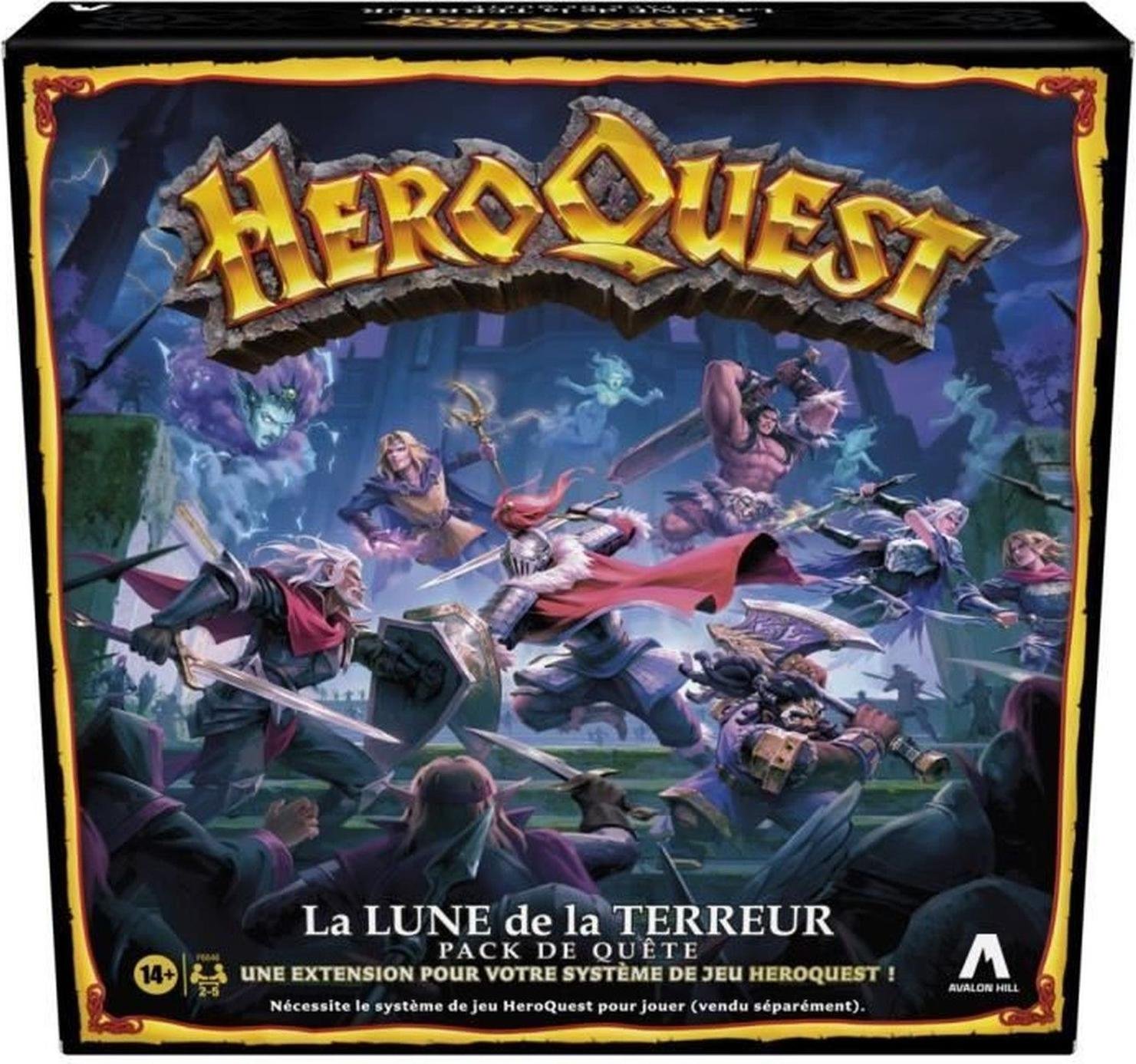 HeroQuest pack de quête La lune de la Terreur système de jeu HeroQuest requis jeux de rôle pour 2 à 5 joueurs dès 14 ans