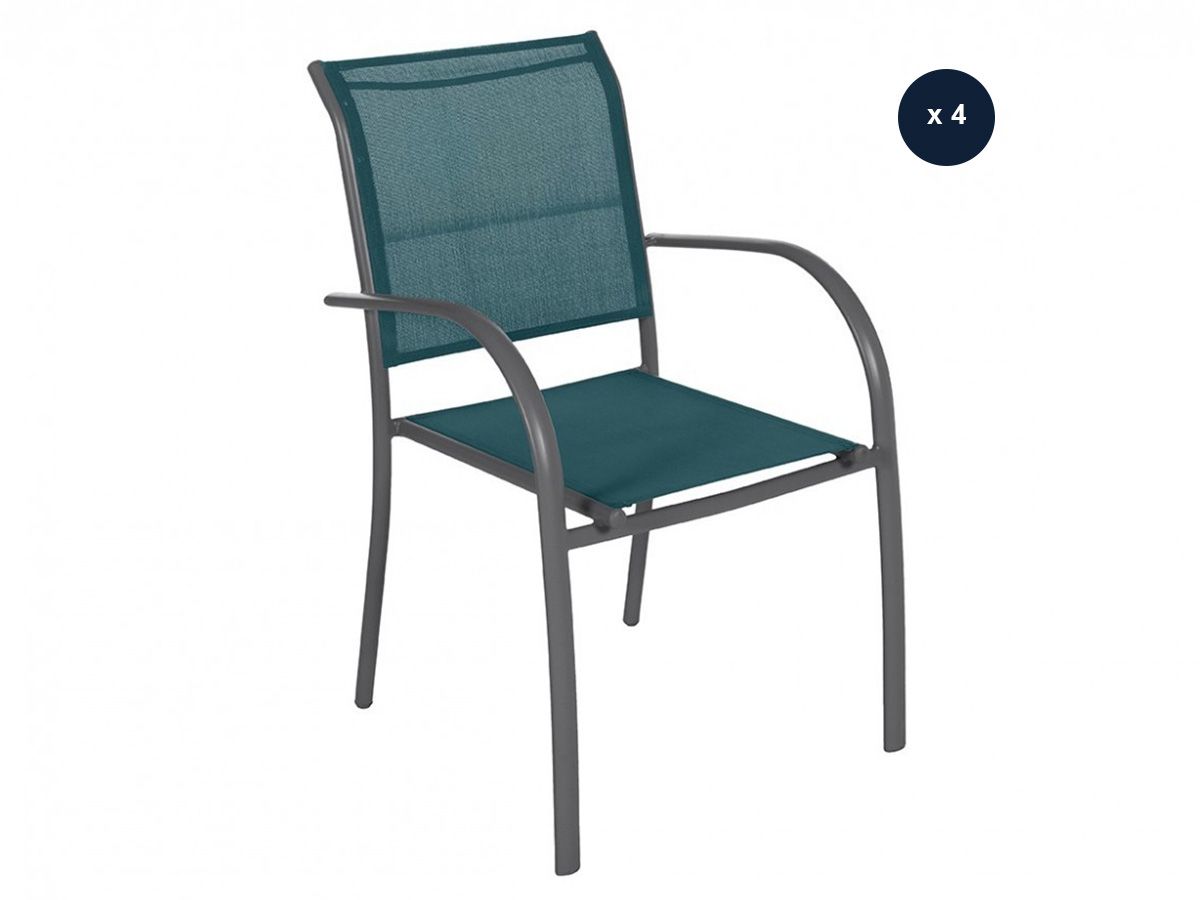 Lot De 4 Fauteuils De Jardin En Texaline Piazza Bleu Canard / Graphite - Hespéride