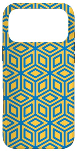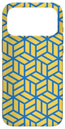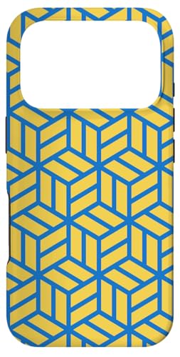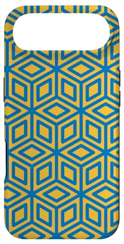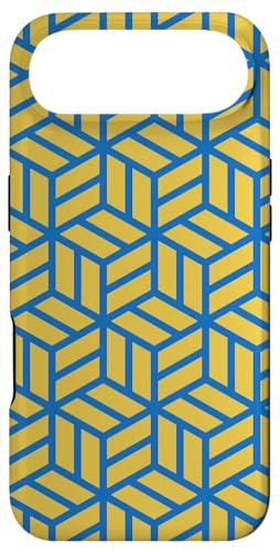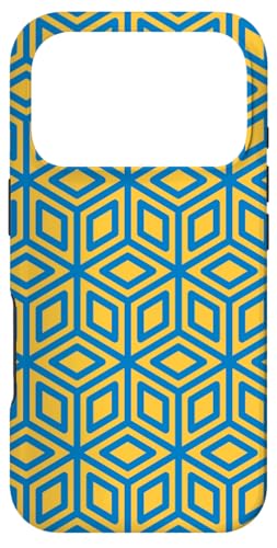 Yellow Blue Geometric Hexagons Cubes Squares Mesh Pattern Coque pour iPhone 17 Pro