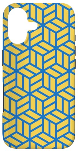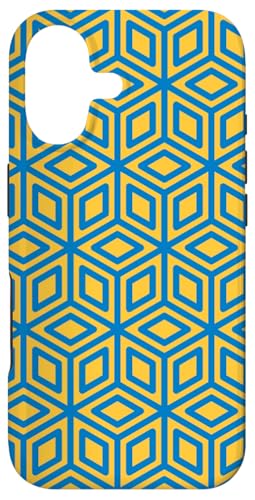 Yellow Blue Geometric Hexagons Cubes Squares Mesh Pattern Coque pour iPhone 17