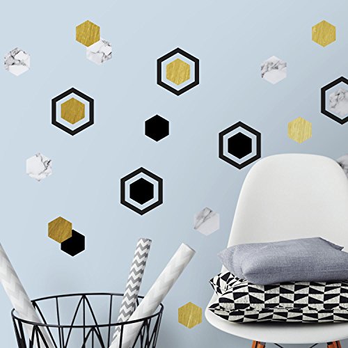 FLEXISTYLE Décoration murale naturelle Hexagons en bois de chêne/HDF pour salon, chambre à coucher (noir, 19 mm)