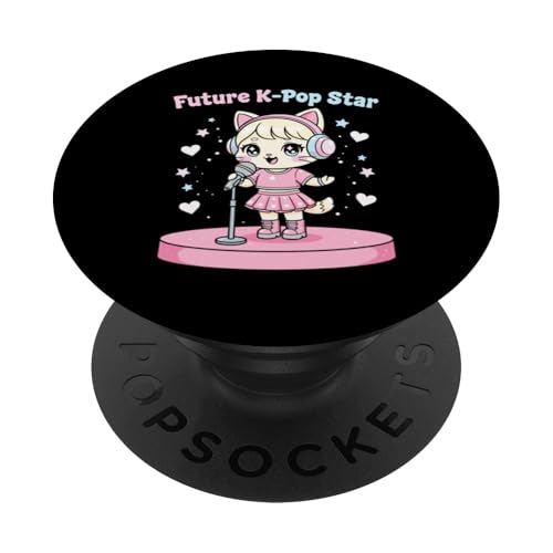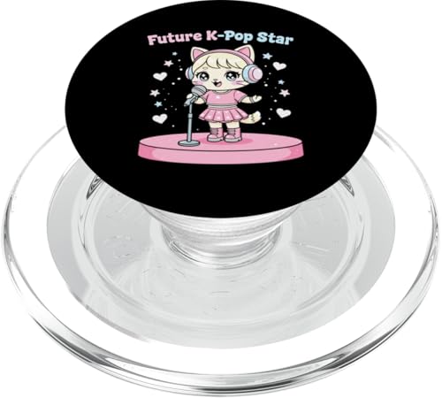 Future Star de K-Pop : Adorable Chat d'anime Kawaii Chibi, Idole chantante PopSockets PopGrip Adhésif