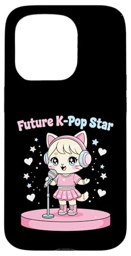 Future Star de K-Pop : Adorable Chat d'anime Kawaii Chibi, Idole chantante Coque pour iPhone 15 Pro