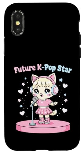 Future Star de K-Pop : Adorable Chat d'anime Kawaii Chibi, Idole chantante Coque pour iPhone X/XS