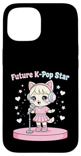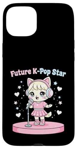 Future Star de K-Pop : Adorable Chat d'anime Kawaii Chibi, Idole chantante Coque pour iPhone 15 Plus